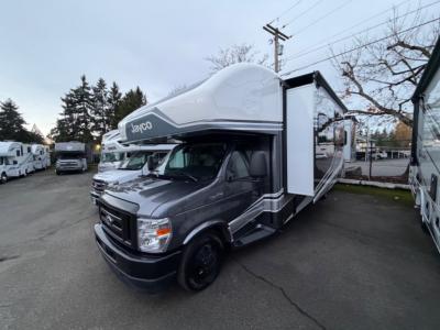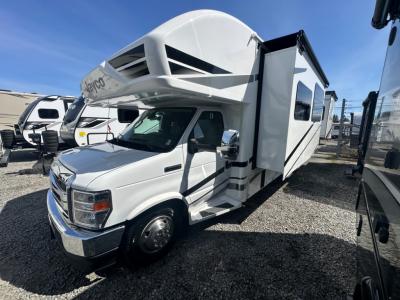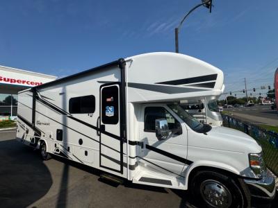 Sleeps 6 Slides 2 Length 32 ft 6 in Ext Width 8 ft 4 in Ext Height 11 ft 8 in Int Height 7 ft Interior Color Modern Farmhouse, Oakridge Exterior Color Standard Graphics, Full-Body Paint: Spring, Summer, Fall, Winter, Midnight Hitch Weight 7500 lbs GVWR 14500 lbs Fresh Water Capacity 47 gals Grey Water Capacity 41 gals Black Water Capacity 32 gals Tire Size LR225/75R16E Furnace BTU 30000 btu Generator 4000 Watt Fuel Type Gas Engine 7.3L V8 Chassis Ford E-450 Horsepower 325 hp Fuel Capacity 55 gals Wheelbase 223 in Number Of Bunks 1 Available Beds Queen Torque 450 ft-lb Refrigerator Type 12 Refrigerator Size 10 cu ft Cooktop Burners 3 Shower Size 30" x 36" Number of Awnings 1 LP Tank Capacity 16.5 gals Water Heater Capacity 6 gal Water Heater Type Gas/Electric DSI AC BTU 15000 btu Basement Storage 55 cu. ft. TV Info LR LED HD Smart TV Awning Info 16' Electric with LED Lights Gross Combined Weight 22000 lbs Shower Type Standard Electrical Service 30 amp Similar Motor Home Class C Floorplans