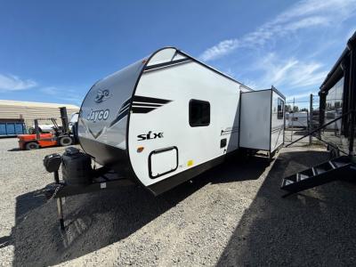 The Jayco Jay Flight SLX travel trailer is quite easy to own because it is lightweight for an easier towing experience. Built on a fully integrated A-frame with galvanized-steel, impact-resistant wheel wells, the Jay Flight SLX has quality at its very foundation. That quality continues on to the electric self-adjusting brakes, easy-lube hubs, Magnum Truss roof system, and LP quick connect. Some of what the mandatory Customer Value Package includes is backup camera prep, Keyed-Alike entry and baggage doors, and an on-demand tankless water heater.