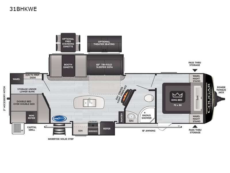 Keystone Cougar Half-Ton travel trailer 31BHKWE highlights:
